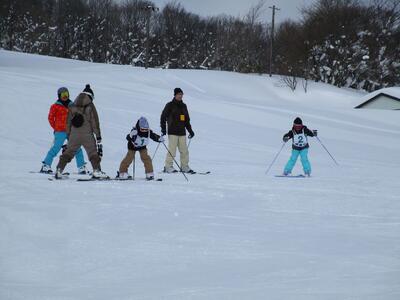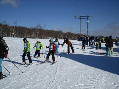 全校児童21人に対して、教師5人、PTAボランティア9人という手厚い体制のもと、習熟度別のグループに分かれ、冬のスポーツに楽しく親しむことができした。