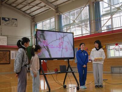 5年生は「2025年の出来事クイズ」で、複式学級で6年と過ごした1年間を振り返りました。