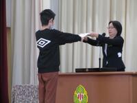 3時間目に「6年生を送る会」が行われました。1・2年生は「6年生とジャンケン勝負」、負けた方がおんぶして歩くというものでした。1年生を軽々とおんぶする6年生、さすがです。2年生が負けた際には、体格差を慮って、おんぶするふりをする優しい6年生でした。3・4年生は「全校児童かるた」、みんなの写真が入った取り札、人柄の示す読み札がとてもよかったです。5年生は「6年生VS在校生クイズ勝負」今年はやったものなどを出題し、結果は6年生の圧勝でした。そして6年生からは、お礼にと「キリマンジャロの演奏」と「6年生誰でしょうクイズ」で盛り上がりました。御返地小らしい優しく温かい空気に包まれた会でした。お昼は「ふれあい給食」、体育館でみんなで一緒に6年生との給食を食べました。卒業までわずか、互いの感謝を伝い合う素敵な時間でした。