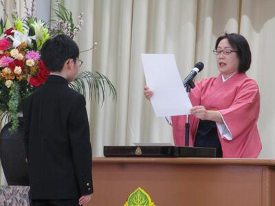 本日、卒業式が行われました。証書を受け取る凛とした姿、体育館一杯に響き渡る思いがこもった呼びかけ、その一つ一つに、6年生二人の大きな成長と逞しさを感じました。式辞にもありましたが、二人が持っている「他人への思いやり」や「責任感」は、人として大切なものです。これからも大きく羽ばたいてほしいと願っています。6年生のみなさん卒業おめでとう!中学校でも頑張ってください!!