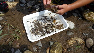 河川学習の一環として、5・6年生は近くを流れる安比川で水生生物調査を行いました。昨年は雨の増水でできなかったので2年越しの活動でした。川に生息する生物を捕まえ、その種類からどんな川かを調査します。ヒラタカゲロウやカワシンジュガイなど捕まえた生物から安比川はきれいな川であることが分かりました。地域を知る、自然を知る大切な学習の場でした。