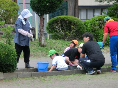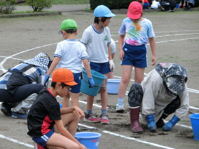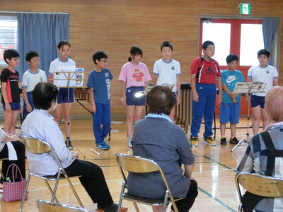 今朝、地域の方と一緒にふれあい草取りを行いました。早朝日差しも強く暑さが心配されましたが、始めるころには、日差しも陰り、涼しい中で作業ができました。あっという間の30分、見る見る校庭がきれいになりました。作業終了後には、ミニライブとばかりに、お礼として音楽で練習した曲を地域の方に披露しました。