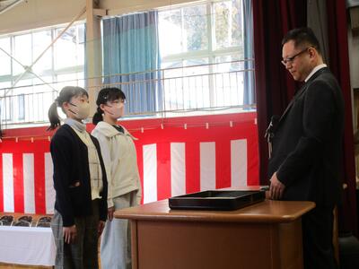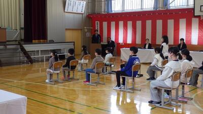 令和7年度のしめくくりの修了式を3月17日(火)に実施しました。1~5年生、それぞれが1年間の成長を式の姿に現していました。代表児童が修了証を受取り、1年間の学びを終えました。